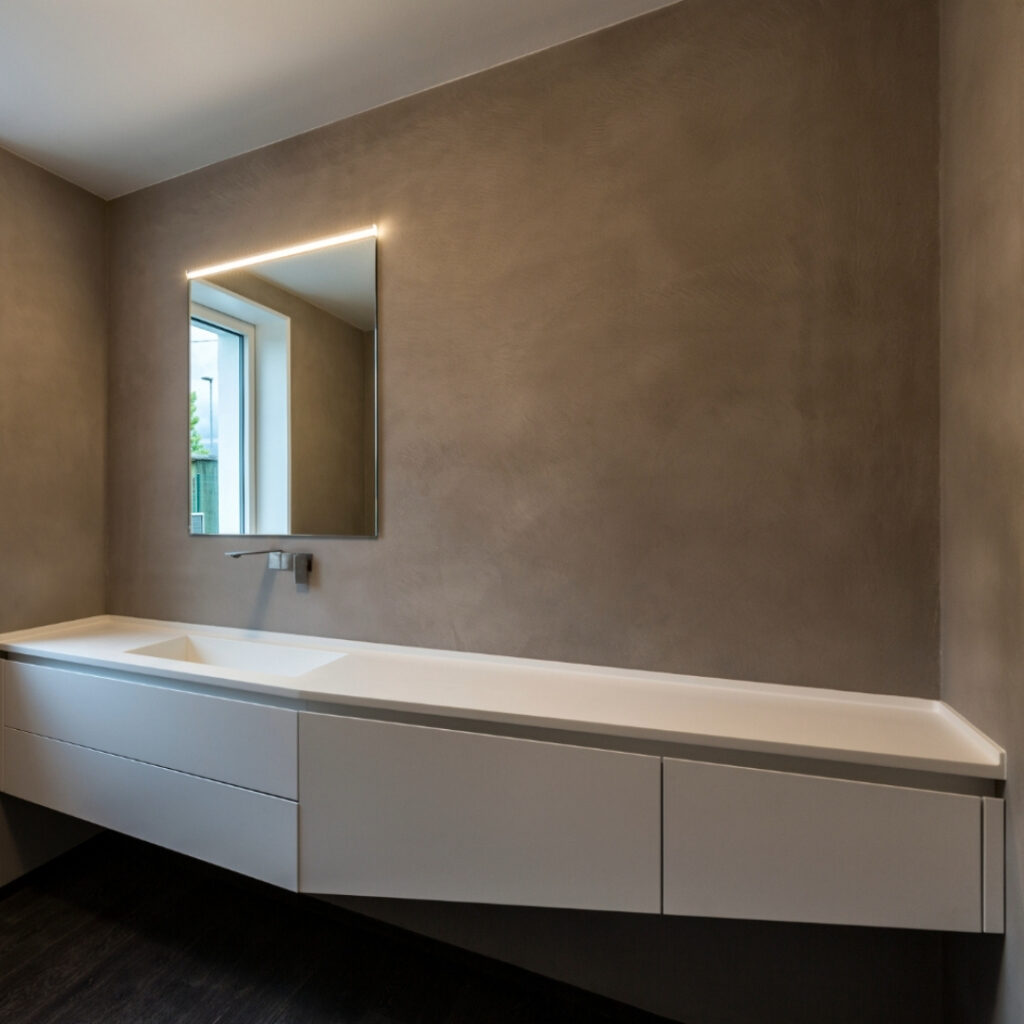 La sua versatilità lo rende adatto a pavimenti, pareti in muratura o cartongesso, scale, bagni e box doccia, offrendo continuità visiva e libertà progettuale in ogni spazio.